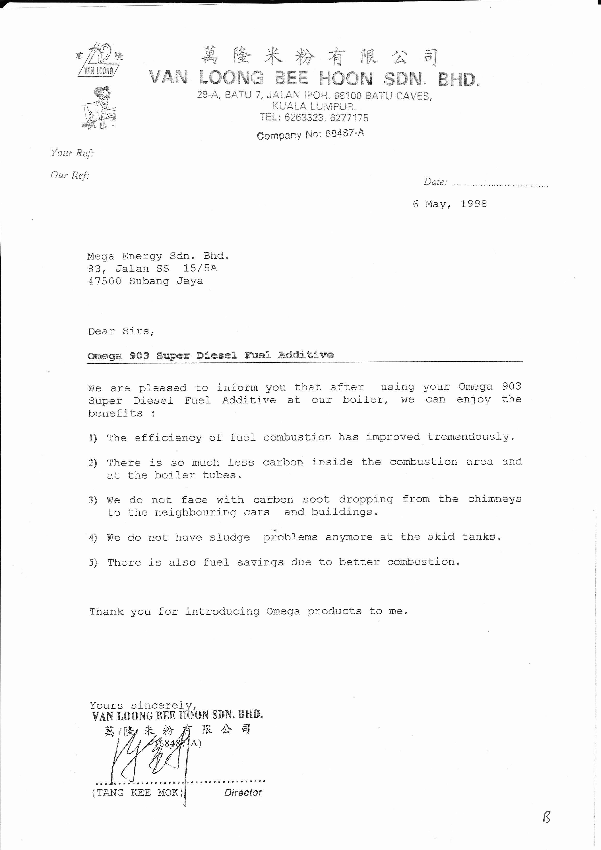 Category: TestimonialsJune 25, 2019Post navigationPreviousPrevious post:Western Refuse Disposal Zone – 1982NextNext post:Omega 71 – ICI Australia Operations Pty LtdRelated PostsCorium 86C – Totokiki (M) Sdn BhdJune 25, 2019OMEGA 690 – Cognis Rika (M) Sdn BhdJune 25, 2019OMEGA 909 – B & B Transport Sdn BhdJune 25, 2019OMEGA 77 and 917 – FeldaJune 25, 2019Omega 909 – Super Engine Oil Additive – Placer DomeJune 25, 2019Omega 78 Food Grade Anti Corrosion Grease – ITW IncJune 25, 2019